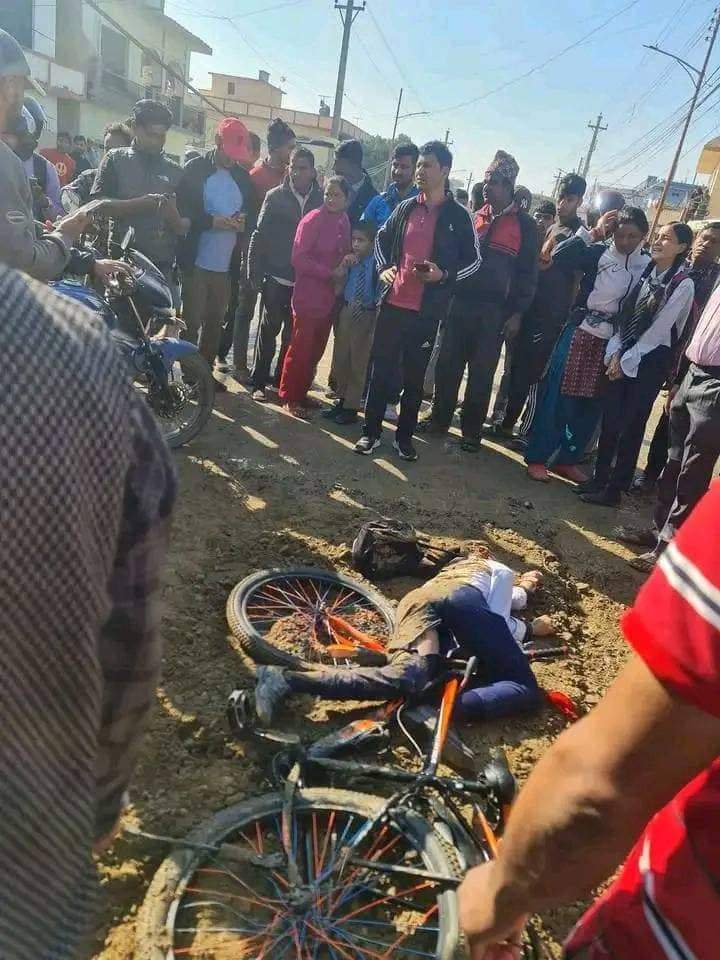 धनगढी। धनगढीमा ग्रेडरले कुल्चिएर छात्राको मृत्यु भएको भन्दै विद्यार्थीहरु आन्दोलीत भएका छन्। आज बिहान धनगढी ५ तारानगरकी १४ बर्षिया चेतना साउदको हसनपुर पिपलचौतारा नजिक पानिपिच गरिरहेको ग्रेडरले लेबल मिलाउँदै ब्याक गर्ने क्रममा कुल्चिदा साउँदको मृत्यु भएको हो। पञ्चोदय माध्यमिक विद्यालय हसनपुरमा ८ कक्षामा अध्ययनरत बालिका साउद साइकलमा स्कुल जाँदै गर्दा उनको घटनास्थलमै मृत्यु भएको प्रहरीले जनाएको छग्रेडरले कुल्चिएर छात्राको मृत्युपछि विद्यार्थीहरु आन्दोलीत बनेका छन्। उनीहरुले केही बेर अगाडी टायर जलाउँदै सडक अवरुद्ध पारेका हुन्। विद्यार्थीहरुले सो सडक खण्डमा आन्दोलन गर्दै धनगढी-स्याउले सडक अवरुद्ध पारेका हुन्। यस्तै हसनपुर क्षेत्रका पसल ब्यवसाय बन्द गराइरहेका छन्। ना १ क ९७५ नम्बरको कालिका कन्स्ट्रक्सनको ग्रेडरका चालक चितवन भरतपुर महानगरपालिका २८ का २७ बर्षीय विमल कुमाललाई प्रहरीले नियन्त्रणमा लिएको छ।भने घटनाको विरोधमा स्थानीयले पनि प्रदर्शन गरिरहेका छन् ।